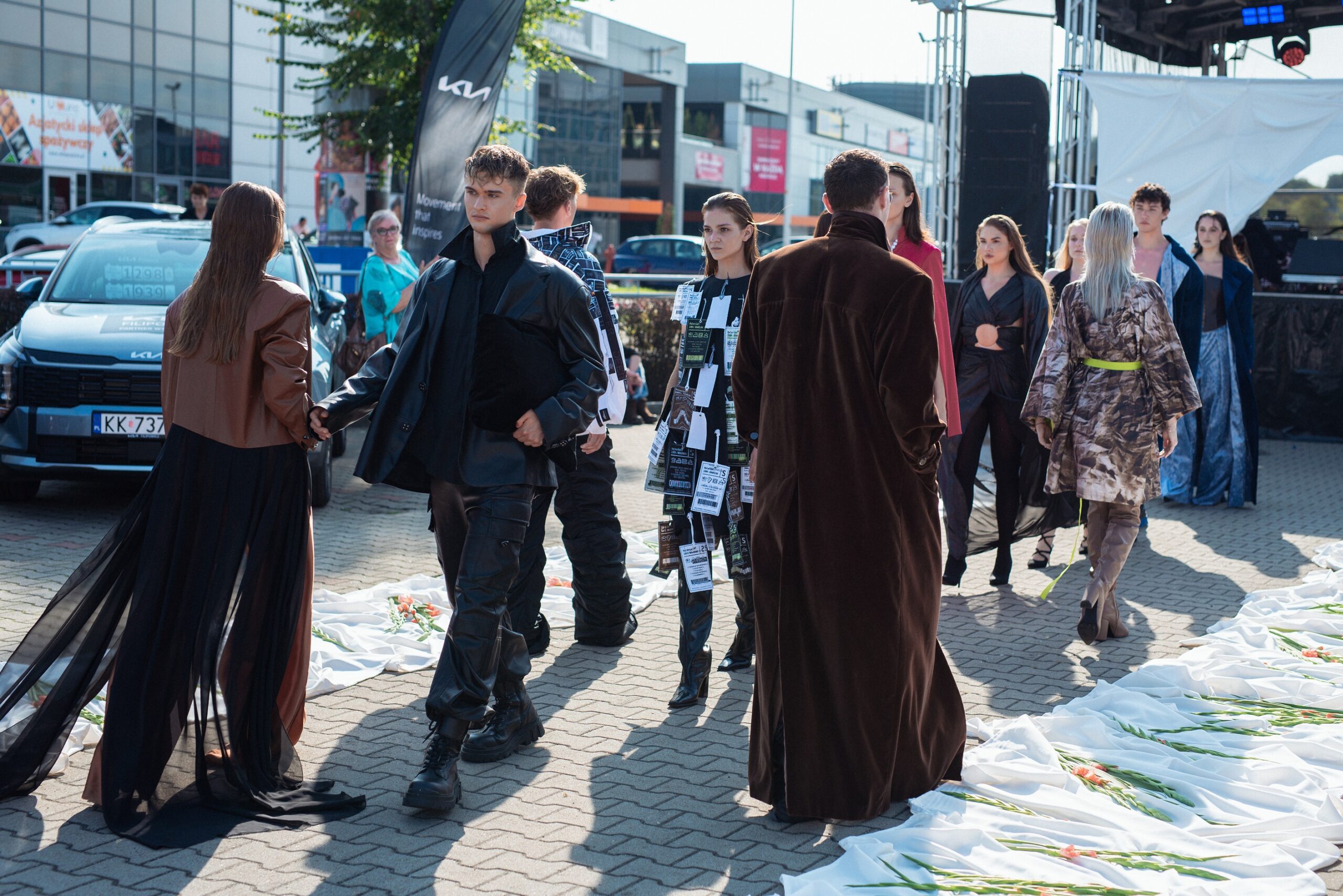 Moda we wrześniu żyje fashion weekami. Magazyn Exclusive zorganizował pokaz mody krakowskich projektantów w otwartej, miejskiej przestrzeni. Wzorem światowych wybiegów, pokaz odbył się w nieoczekiwanym miejscu. Przestrzeń przed znajdującym się w krakowskim Podgórzu kupieckim centrum handlowym, popularnie zwanym przez krakowian Tandetą, wszystkim kojarzy się z handlem odzieżą, ale raczej nie z pokazami mody czy fashion weekiem. To właśnie w takim otoczeniu, podczas plenerowego festiwalu Fashion & Food Festival, nieomal na ulicy, stanęła ubrana świeżymi kwiatami artystyczna scenografia. Stała się ona tłem pokazu, który połączył wizje różnych projektantów w intrygujący, wzbudzający emocje i ciekawość spektakl