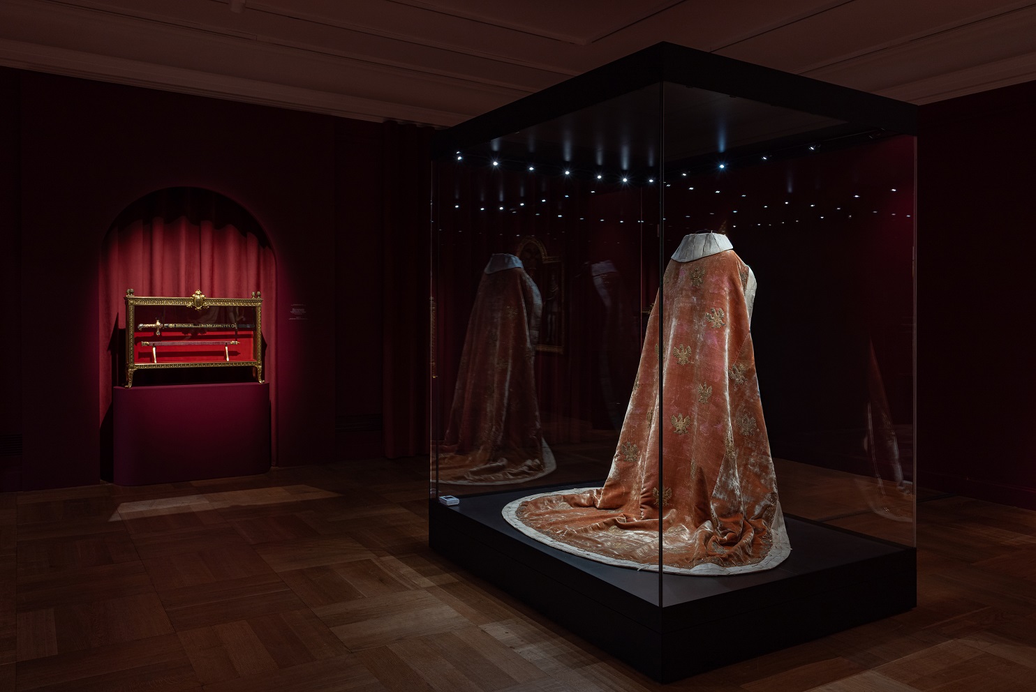 Wśród dzieł prezentowanych na ekspozycji bezcenne dla historii polskiej artefakty, takie jak otwierający wystawę płaszcz koronacyjny Stanisława Augusta (1764) czy zbroja młodzieńcza Zygmunta Augusta (1533), sąsiadują z arcydziełami dawnych mistrzów, np. Antoona van Dycka, Louisa-Michela van Loo czy Alexandre’a-Francois Desportes’a.
